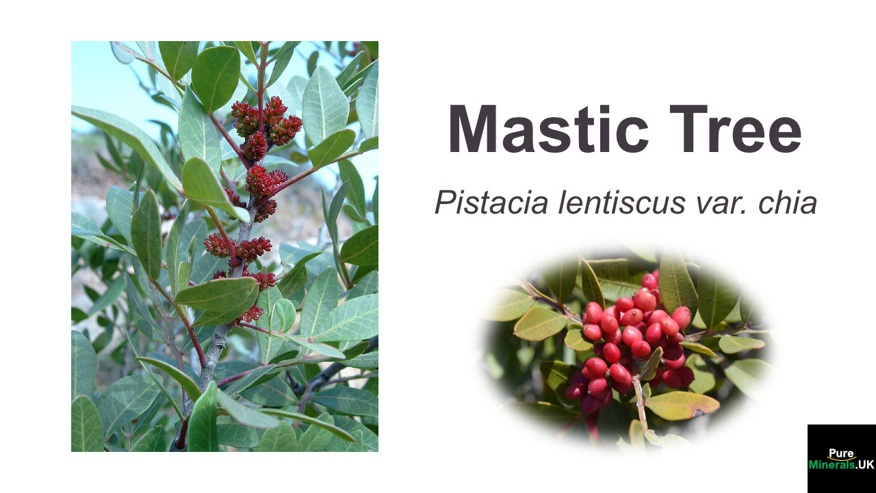 The Mastic Tree (Pistacia lentiscus var. chia), native to the Greek island of Chios and parts of the Mediterranean, is prized for producing Mastic resin, a natural aromatic gum with remarkable therapeutic properties. This resin, often called mastiha or tears of Chios, has been valued since antiquity by physicians such as Hippocrates and Dioscorides for its broad medicinal effects. Its uniqueness lies both in its chemical composition and its range of verified health benefits.